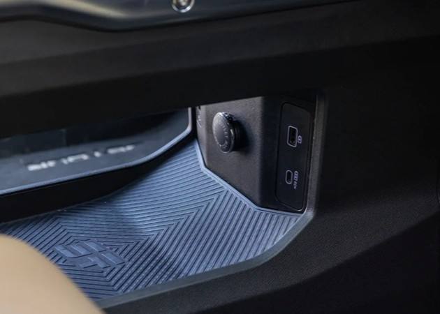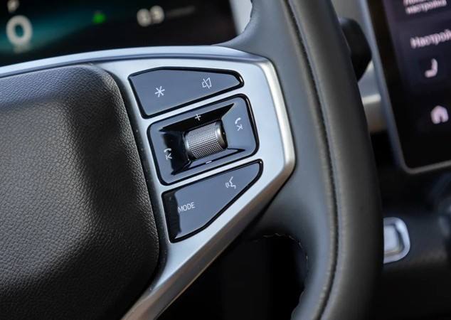 Мультифункциональный руль в форме шестигранника не только отлично вписывается в рубленые формы остального интерьера, но и добавляет удобства вождению. На центральную консоль вынесены селектор коробки передач, шайба режимов движения и ниша для телефона с функцией зарядки, а под ней есть эргономичный отсек с прикуривателем и USB-разъемами.