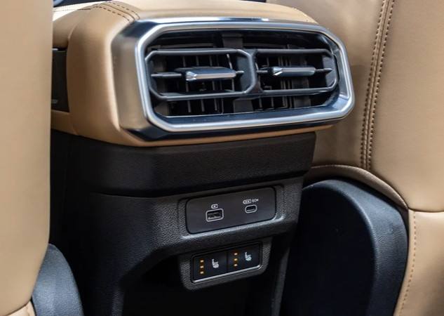 Отделка сидений и карт дверей выполнена из износостойкой экокожи и алькантары — практичное и приятное на ощупь решение. В JETOUR T2 есть полноценный «зимний пакет» с подогревом всех сидений и набором решений для задних пассажиров, делающим поездки на втором ряду по-своему увлекательными.